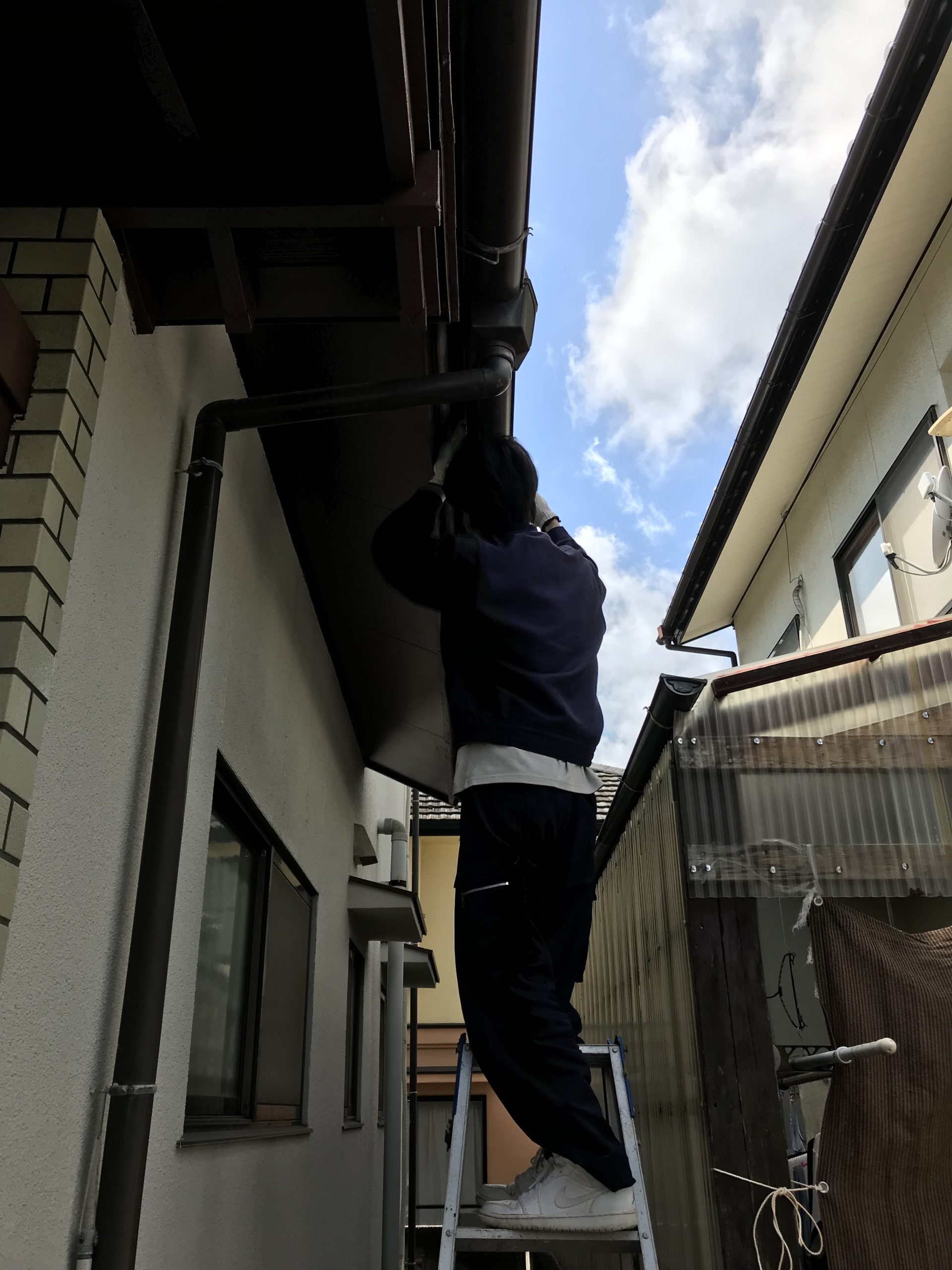 窓枠サッシ周りのコーキングと雨樋の確認をしました、窓枠サッシ周りのコーキングは問題ありませんでしたが、雨樋は勾配がよろしくなかったので直しました。